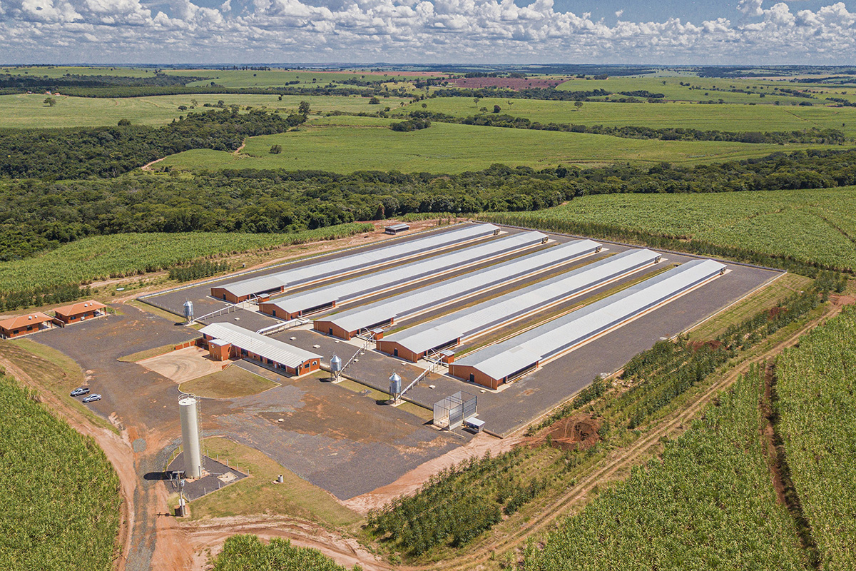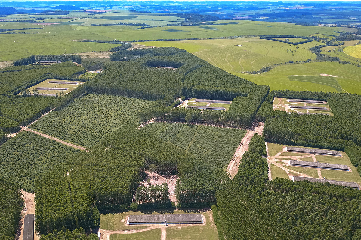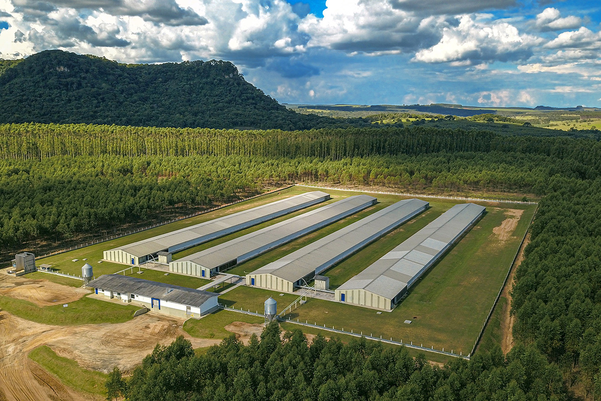 Só para ter uma ideia, as granjas estão implantadas em áreas isoladas, cercadas por barreiras sanitárias naturais de reflorestamento, com rigoroso controle de acesso, restrito aos colaboradores e um rígido protocolo sanitário. E as aves são alimentadas com ração de formulação exclusiva, produzida pela própria Globobiotech, composta por nutrientes de origem vegetal que garantem excelente qualidade de vida, saúde e produção das aves.